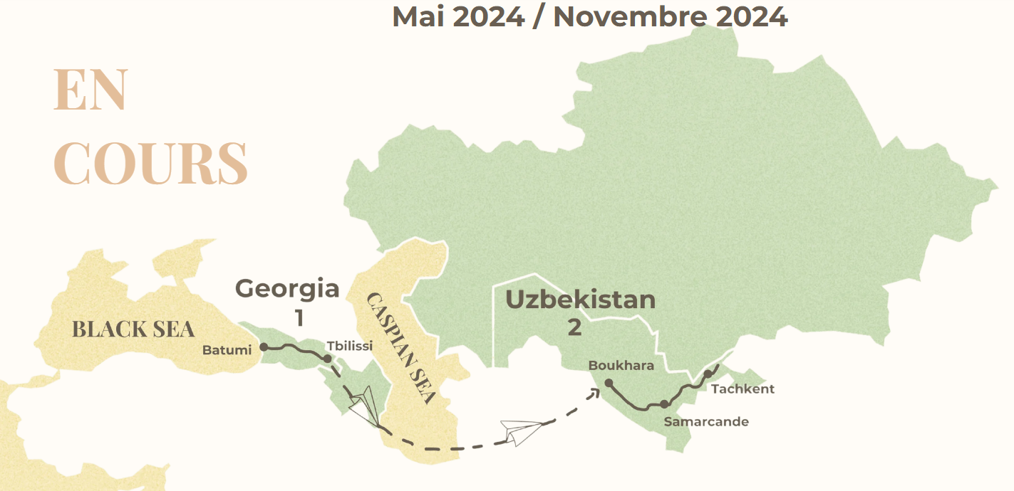 Sur leur route, ils sont allés à la rencontre de tailleurs de pierre. Sur place, ils y ont découvert un nouveau savoir-faire et de nouvelles cultures. Ils y ont découvert de nouvelles façons de travailler la pierre et la découverte de pierres locales. Leur véritable départ est marqué par leur arrivée à Batumi en Géorgie. Ils expliquent que durant leur voyage, la ville mêle port industriel, quais modernes, face aux montagnes du Caucase. Ils y trouvent alors des paysages contrastés où ils allaient y découvrir une culture locale et une religion orthodoxe qui influencent fortement l’architecture. Le langage architectural est unique qui mélange influences orientales, occidentales et asiatiques. Ils y découvrent des motifs et des bas-reliefs. Ils rencontrent alors un tailleur de pierre, Torniké Madchaidze. Il est maître ornemaniste. Il sait comment composer ses ornements et icônes et, avec liberté, jouer avec l’ombre et la lumière pour un résultat touchant et sensible.