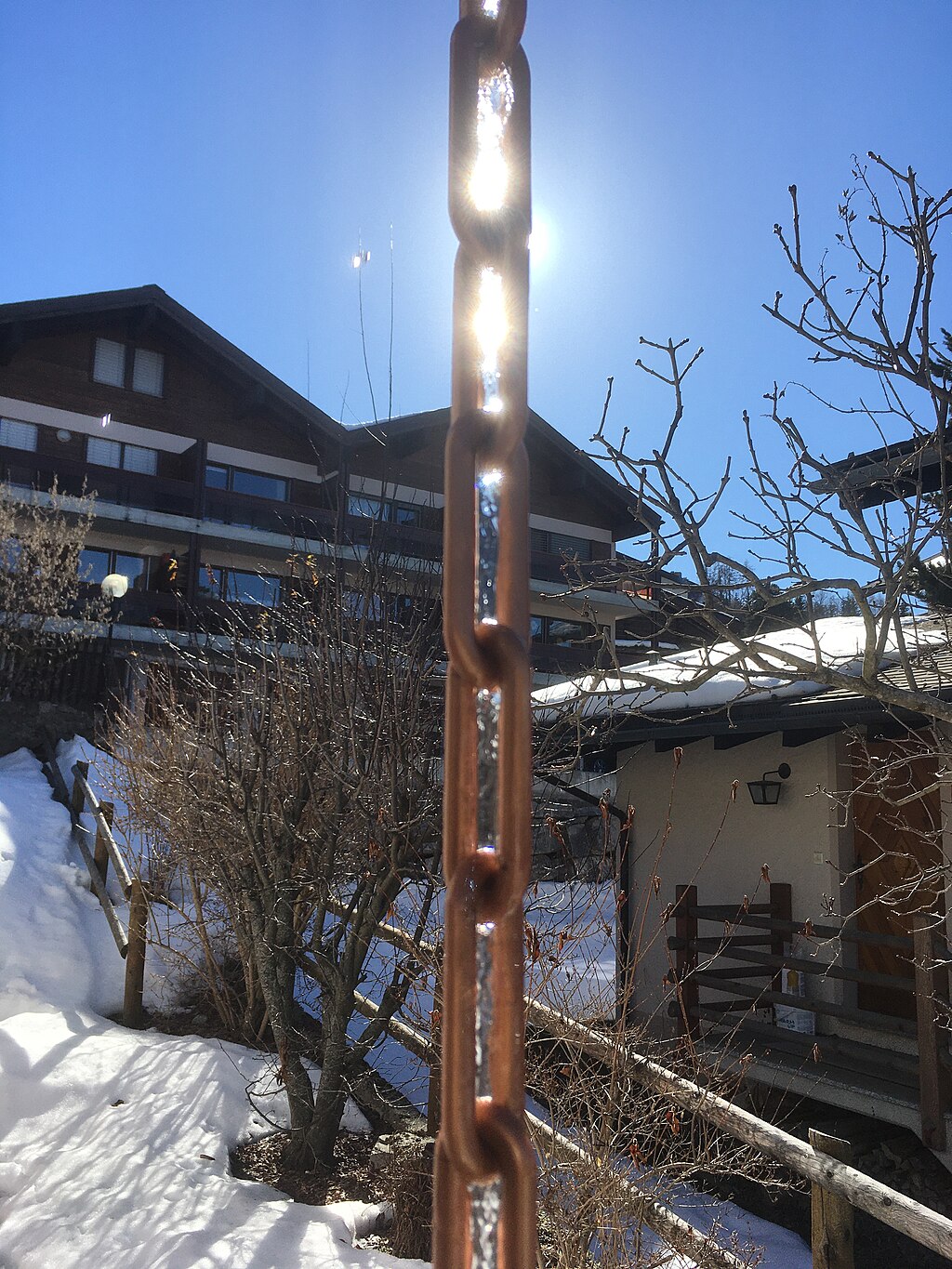 - les chaînes de pluie ne conviennent pas à toutes les toitures. Pour être efficace, l'avant-toit doit être d'au moins un mètre ;