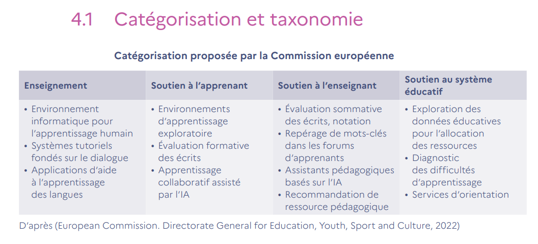 — planifier l’IA dans les politiques de l’éducation (...) pour atteindre les objectifs de l’ODD 4 [Objectif de développement durable 4 : Assurer l’accès de tous à une éducation de qualité, sur un pied d’égalité, et promouvoir les possibilités d’apprentissage tout au long de la vie] ;