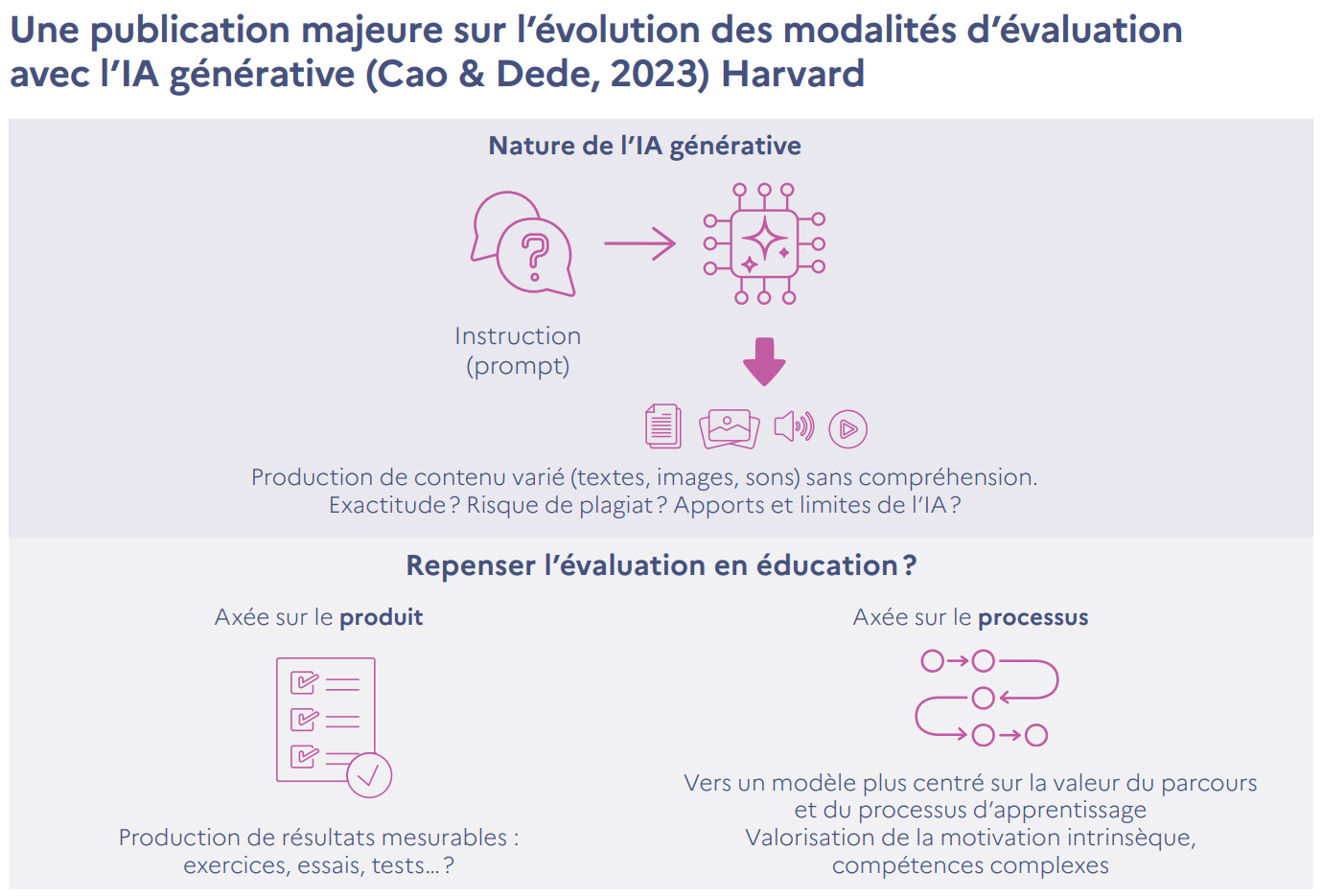 Les éducateurs peuvent encourager les apprenants à tirer parti de l’IA générative pour améliorer leur processus d’apprentissage, en mettant l’accent sur la valeur du parcours plutôt que sur le seul produit final.»