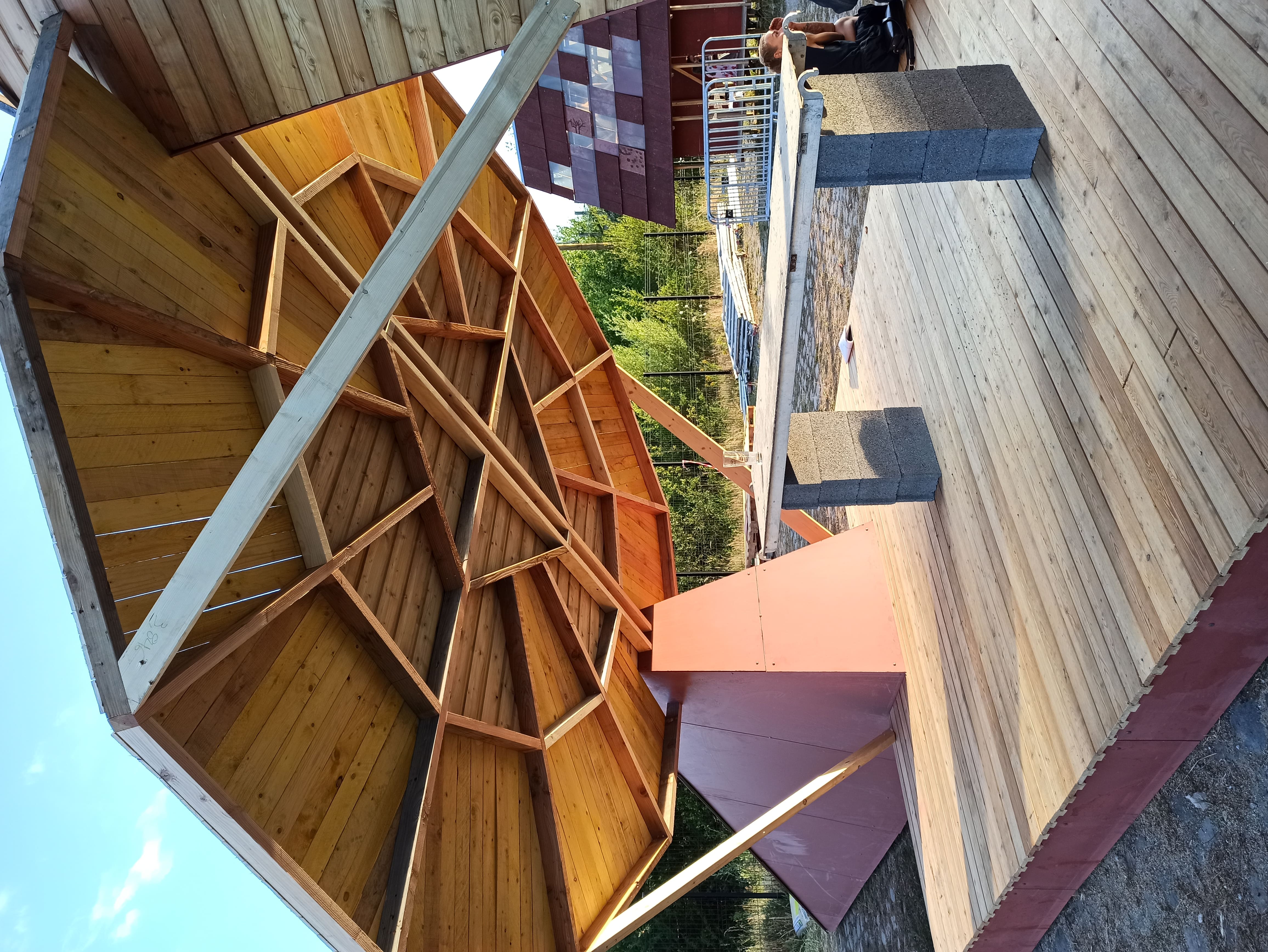 Celle-ci a d’abord été conceptualisée et imaginée par Lydie Majcherczyk, architecte de l’Atelier LMA basé à Lille, puis développée, fabriquée et installée avec les compagnons.
