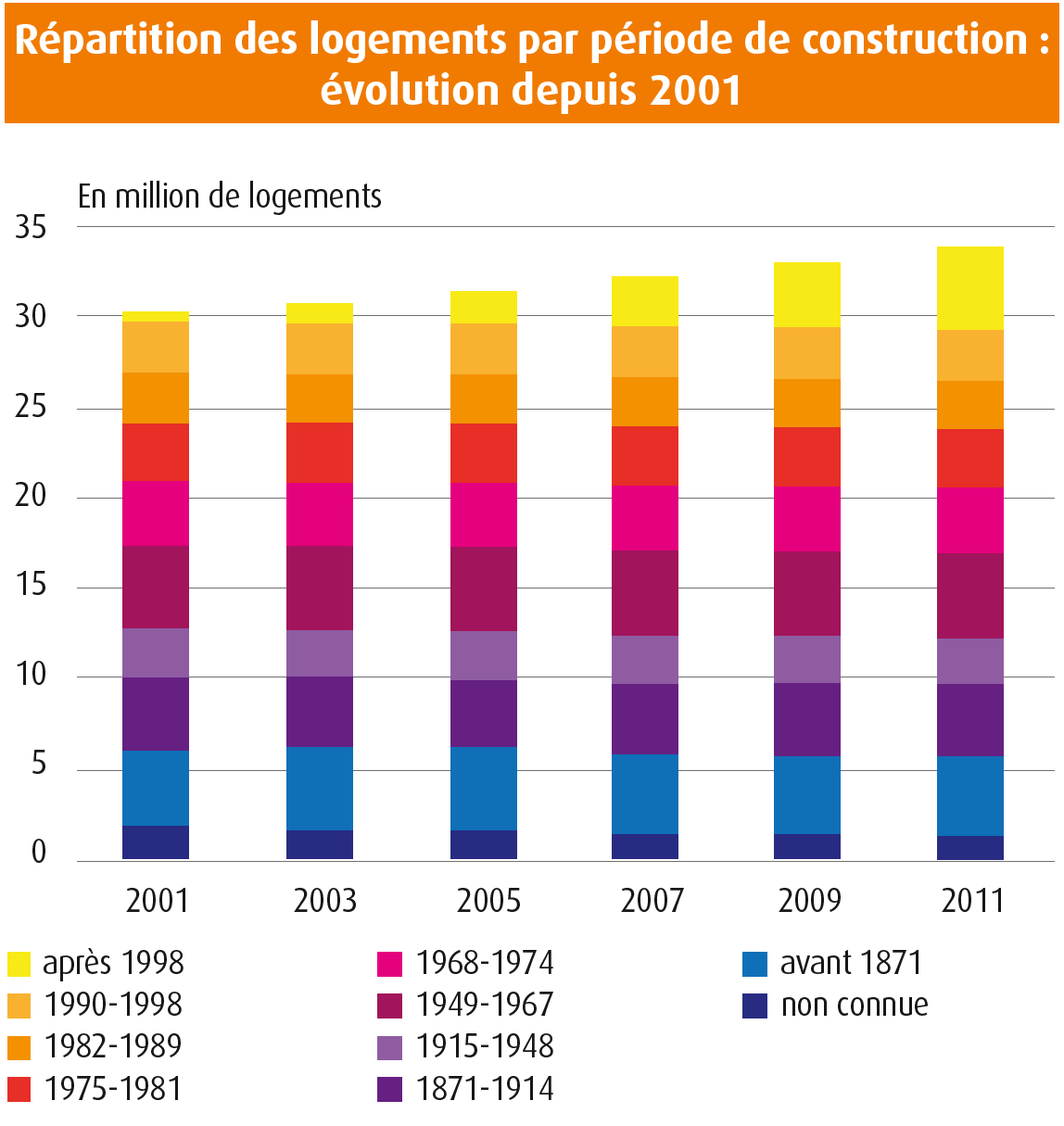 La répartition par période de construction nous informe sur les besoins en rénovation énergétique, et sur les types de constructions concernées